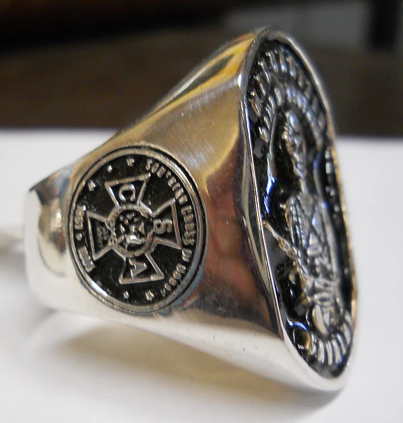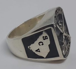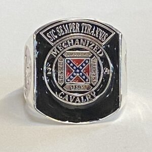 MC035 – Sterling Mechanized Cavalry Virginia 2nd Battalion Company A Sic Semper Tyrannus Ring $250.00