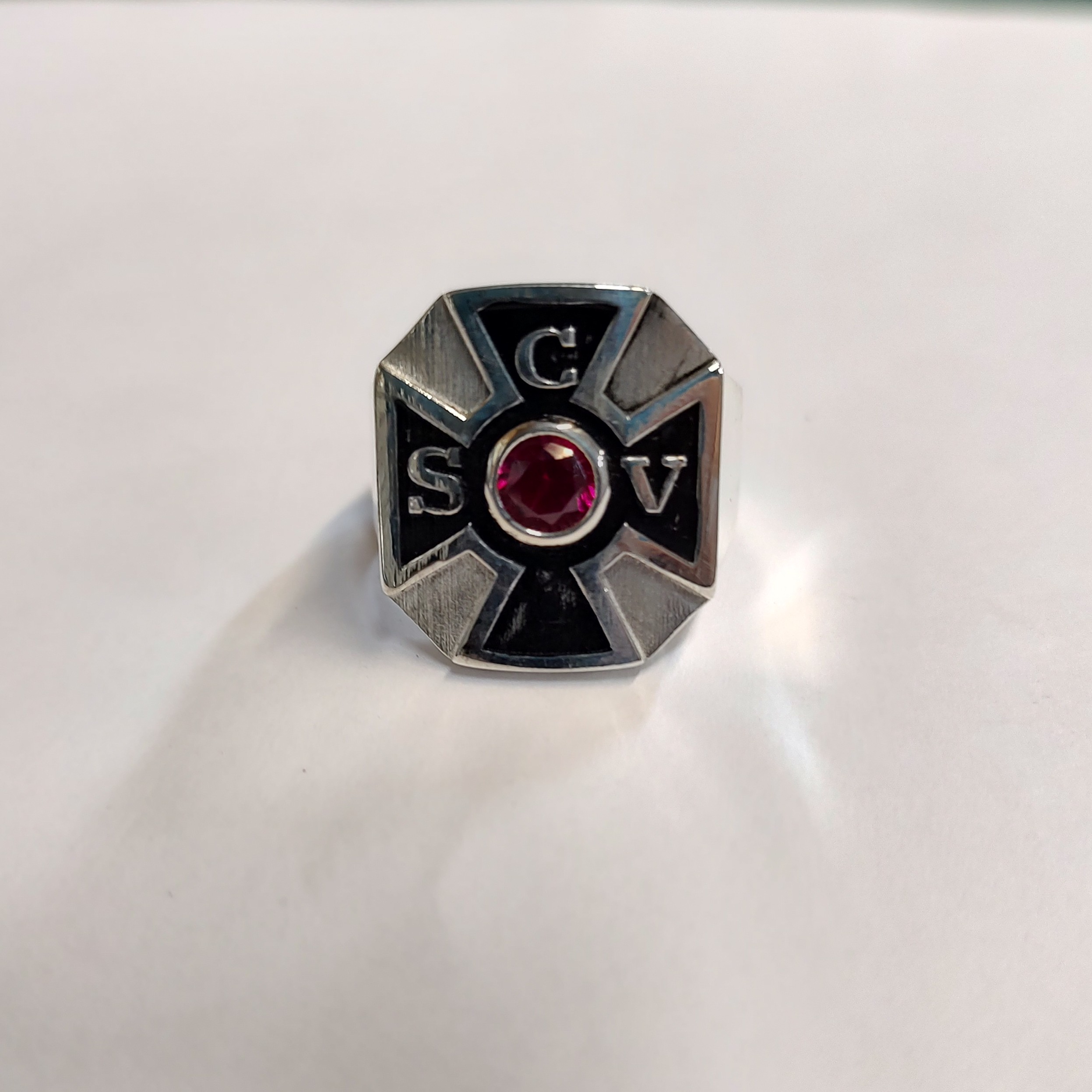 MC034 Sterling CSA Ring with Synthetic Ruby $233.00