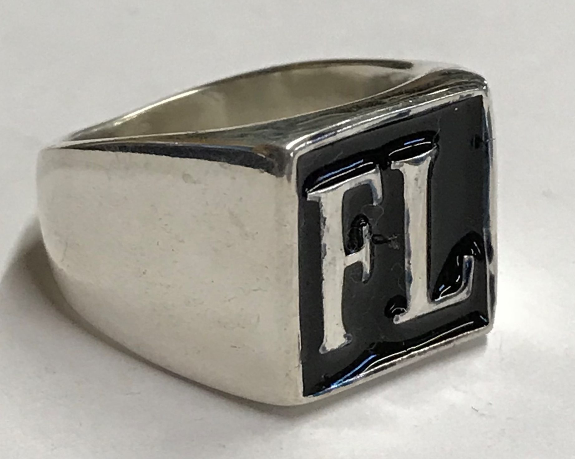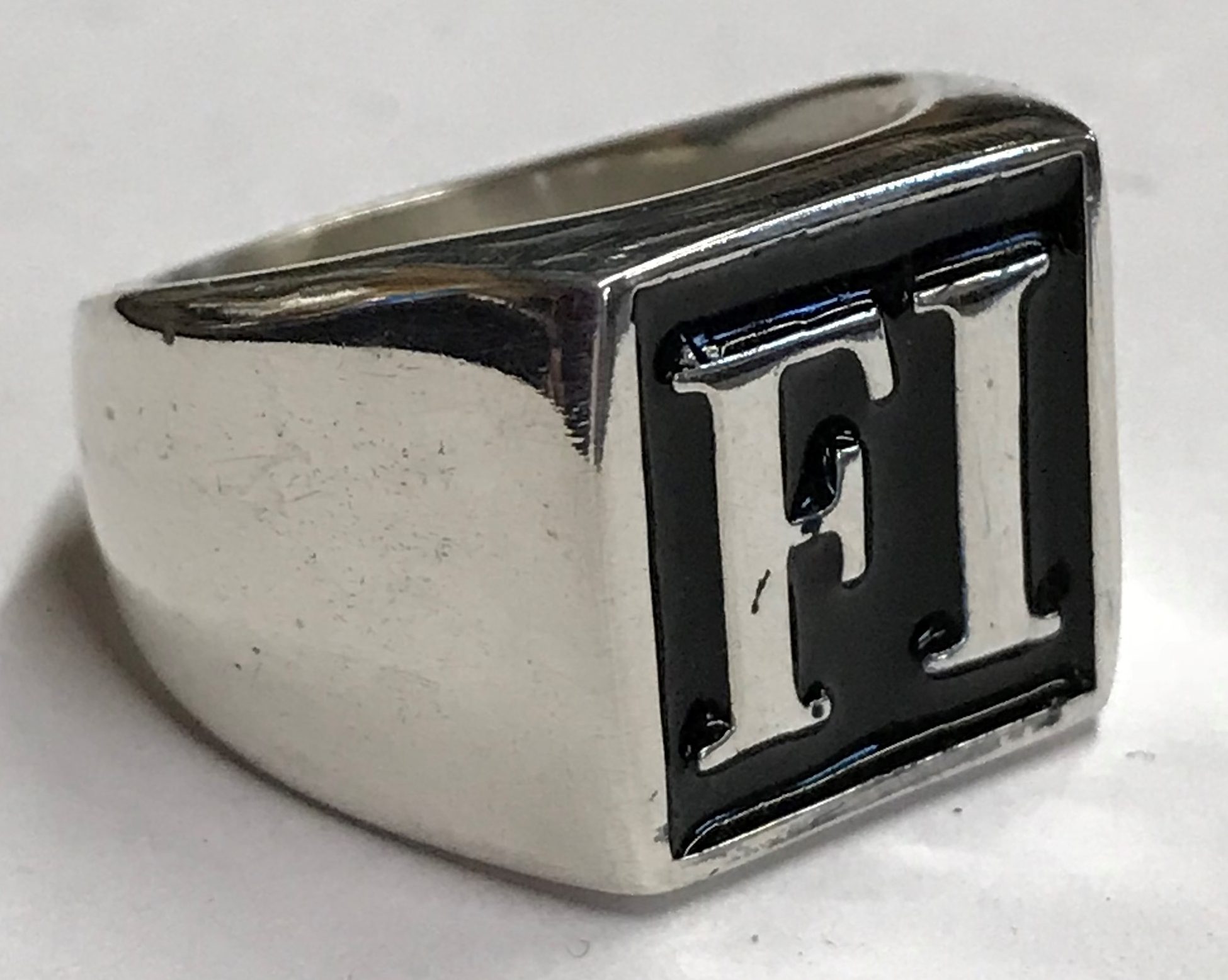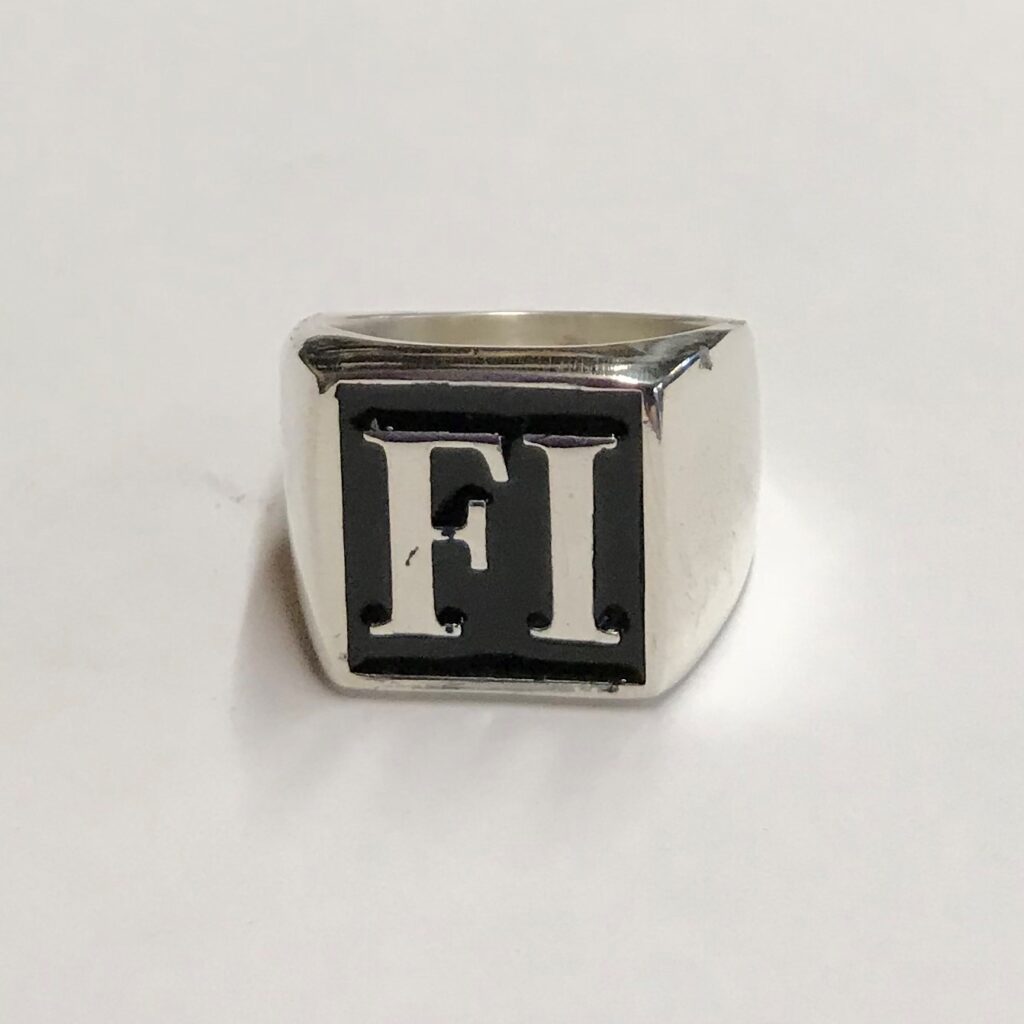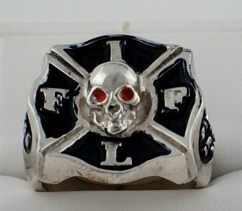 FI11 Sterling Men’s Fire and Iron Round Enameled Ring.
