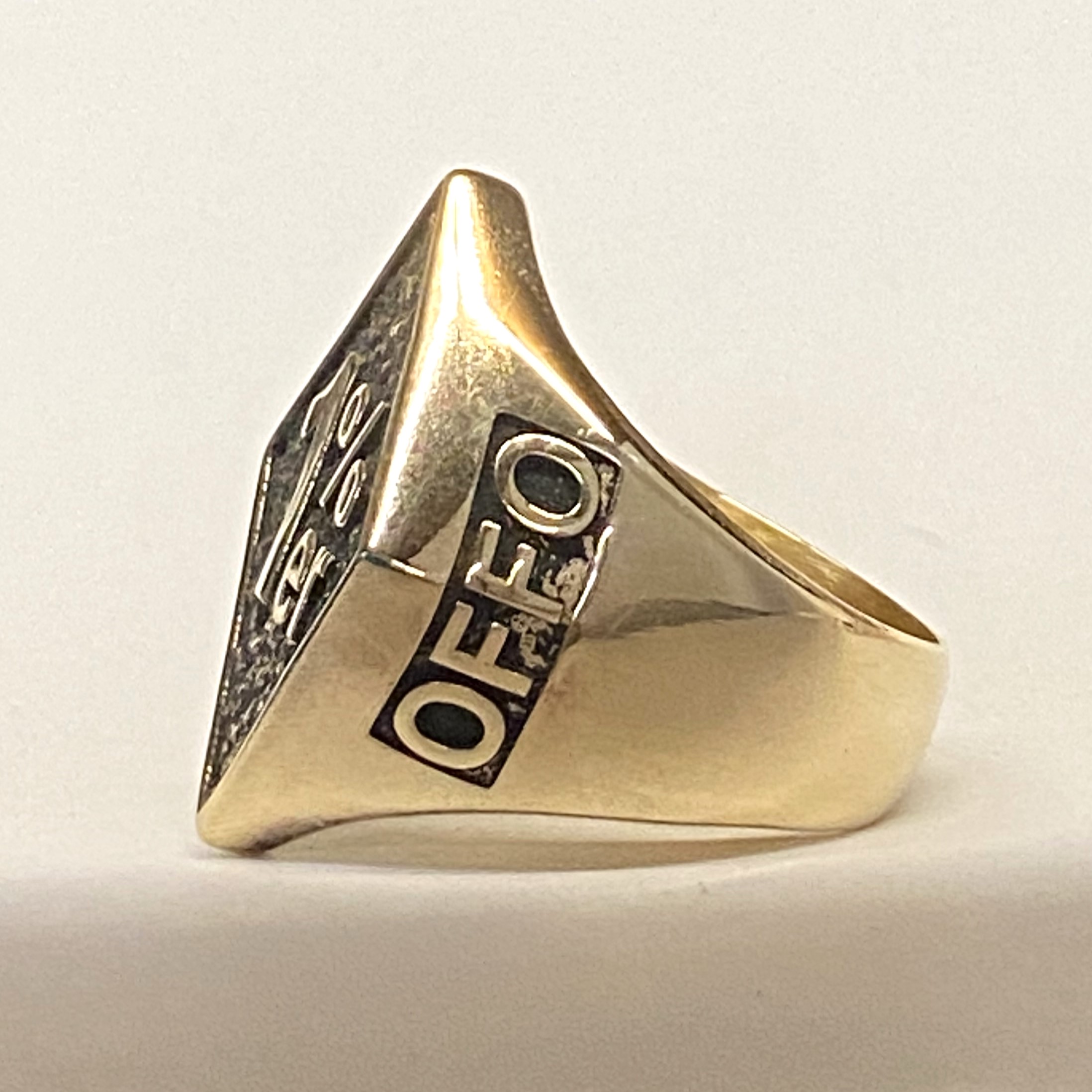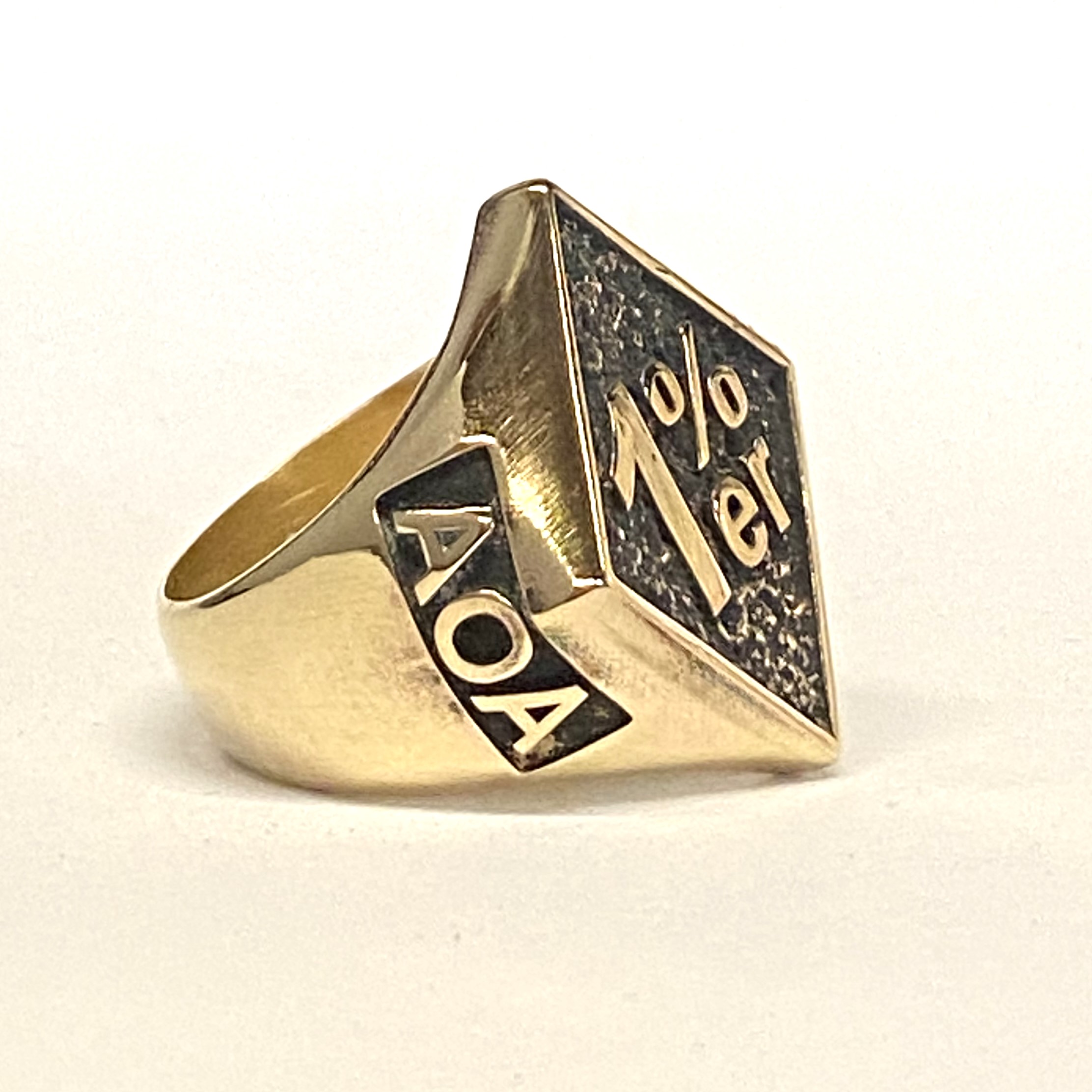 10k Gold 1%er Diamond Shaped Ring with 1%er on the top and AOA on one side and OFFO on the other side.