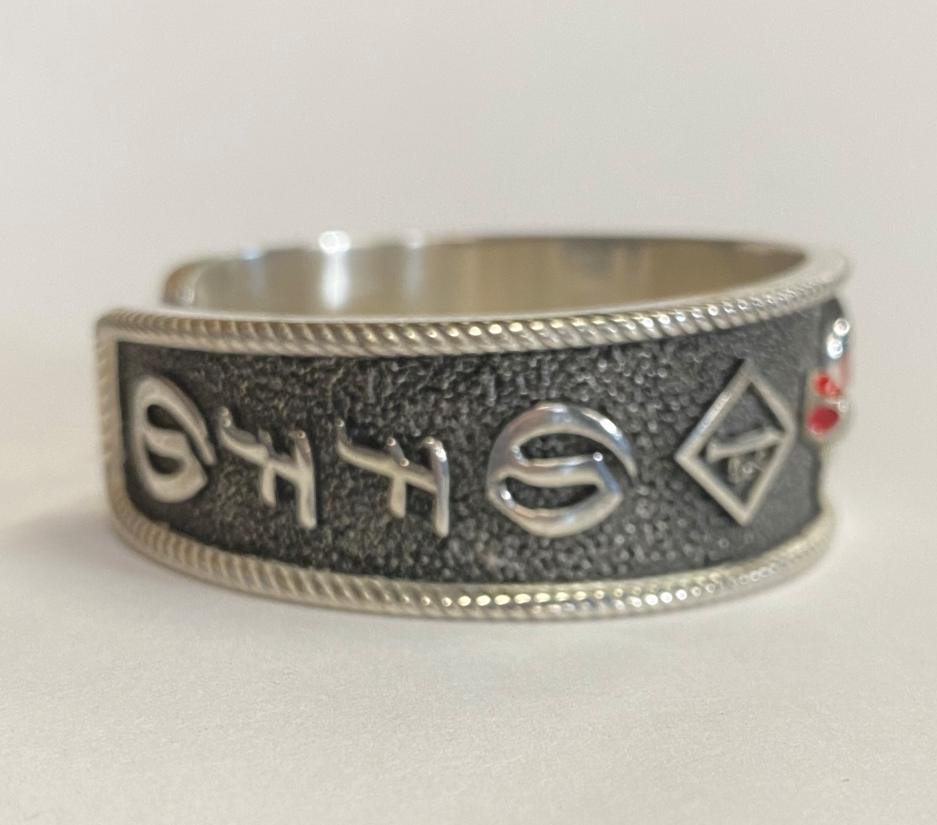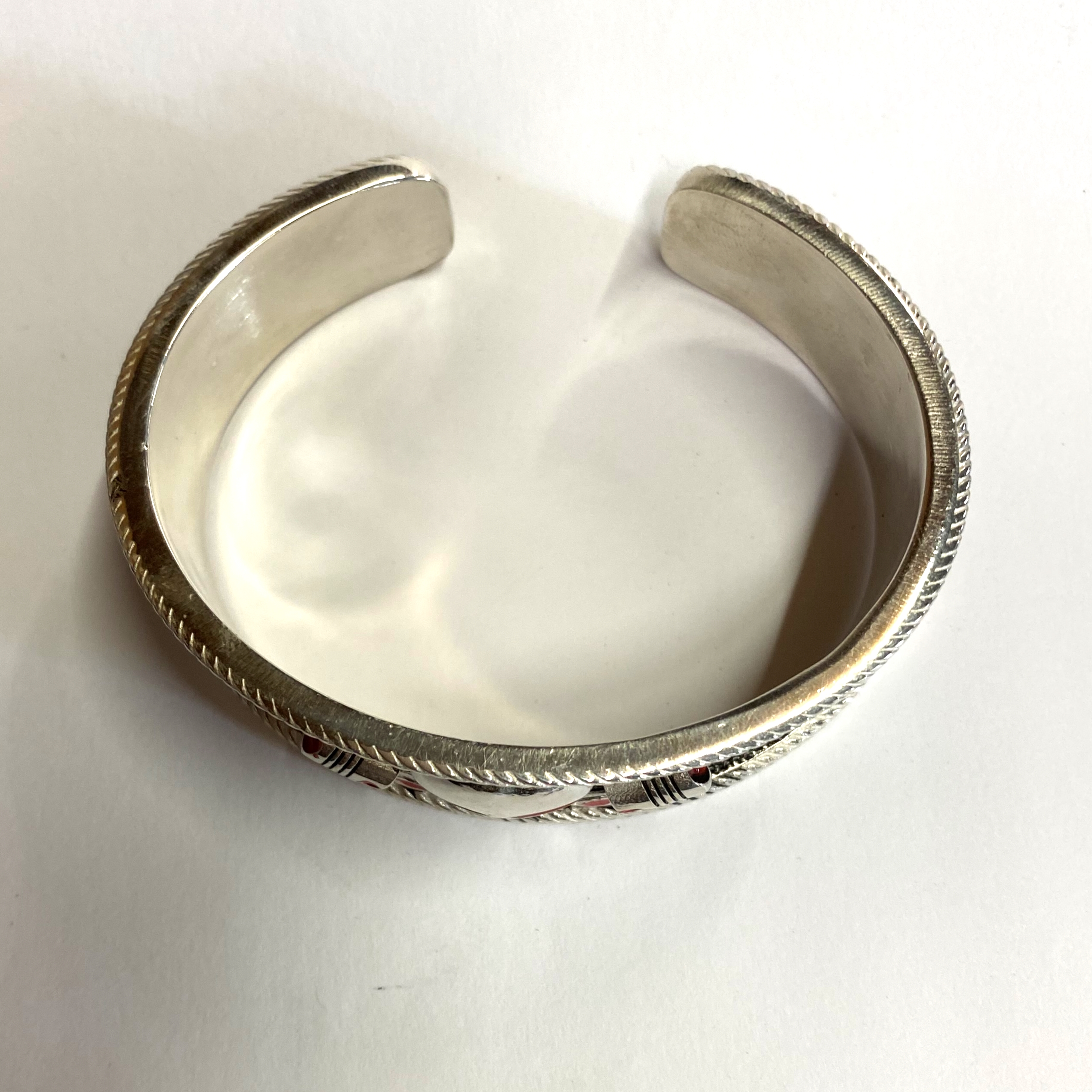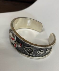 This item measures 23.5mm wide. It weighs 98 grams in sterling silver.