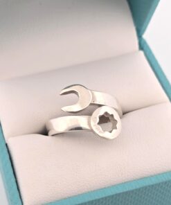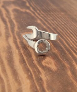 Add a touch of unique style to your look with this Ladies Sterling Open End Box Wrench Ring. Handcrafted with sterling silver, this ring is an elegant combination of industrial design and feminine charm. Perfect for any occasion, this statement piece will surely set you apart from the crowd. Also available in 10k, 14k, 18k, or Platinum. Please contact us for pricing