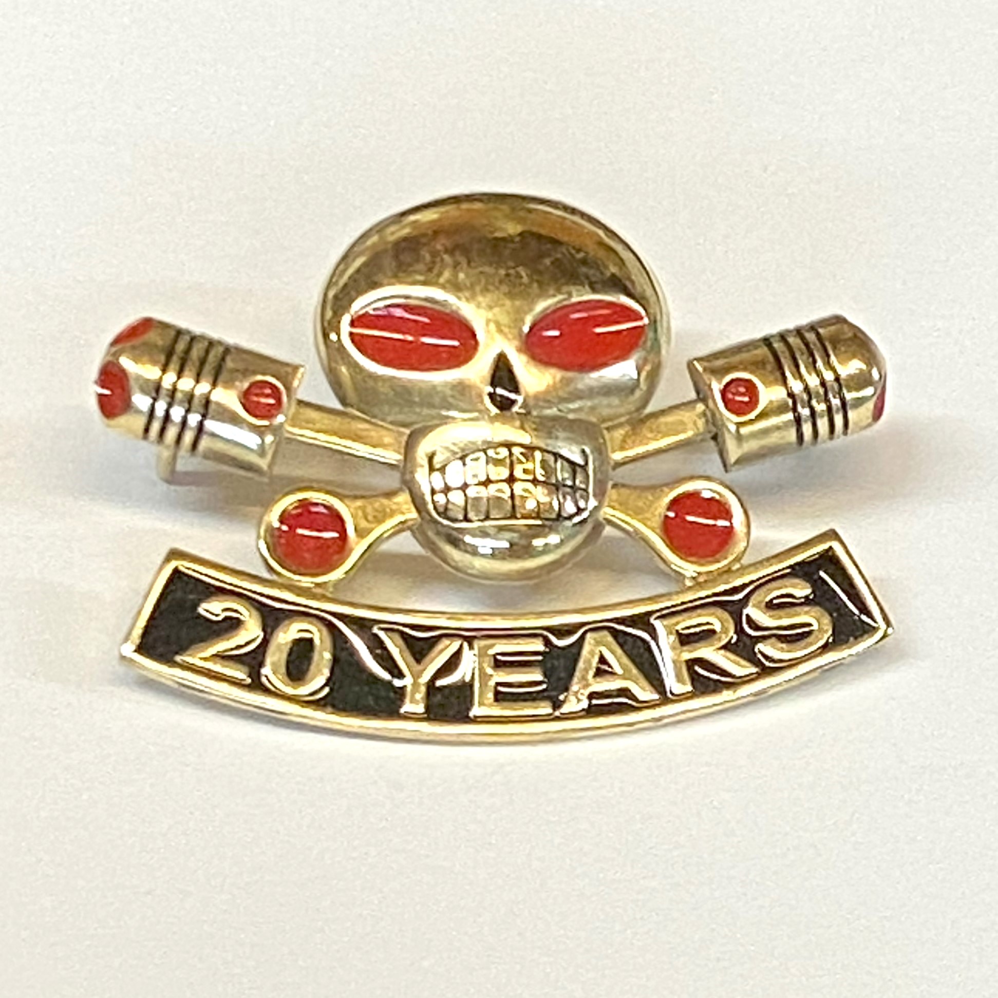 Large Brass Charlie Pin with 20 Year Rocker comes with kit to attach to your vest.