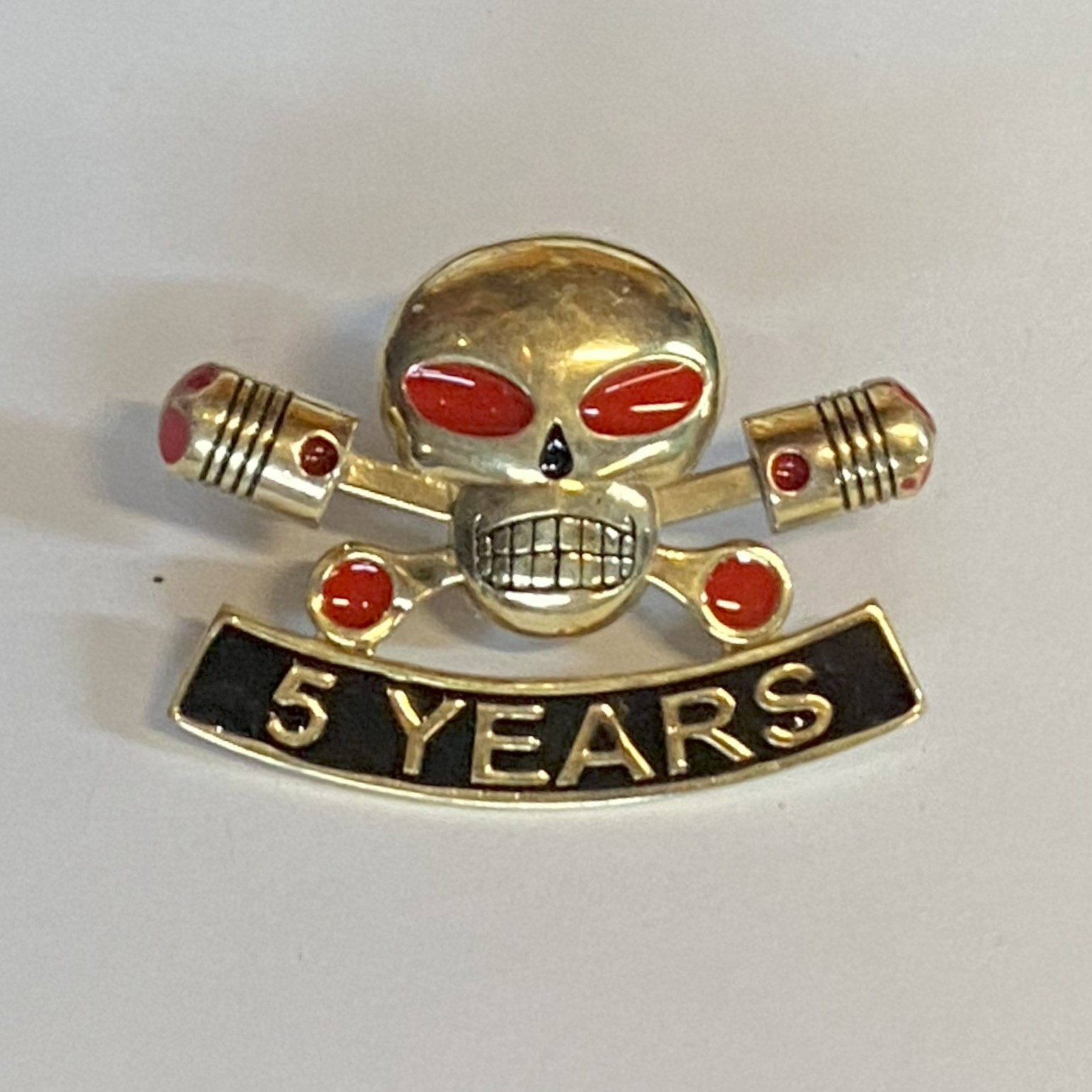 Large Brass Charlie Pin with 5 Year Rocker comes with kit to attach to your vest.