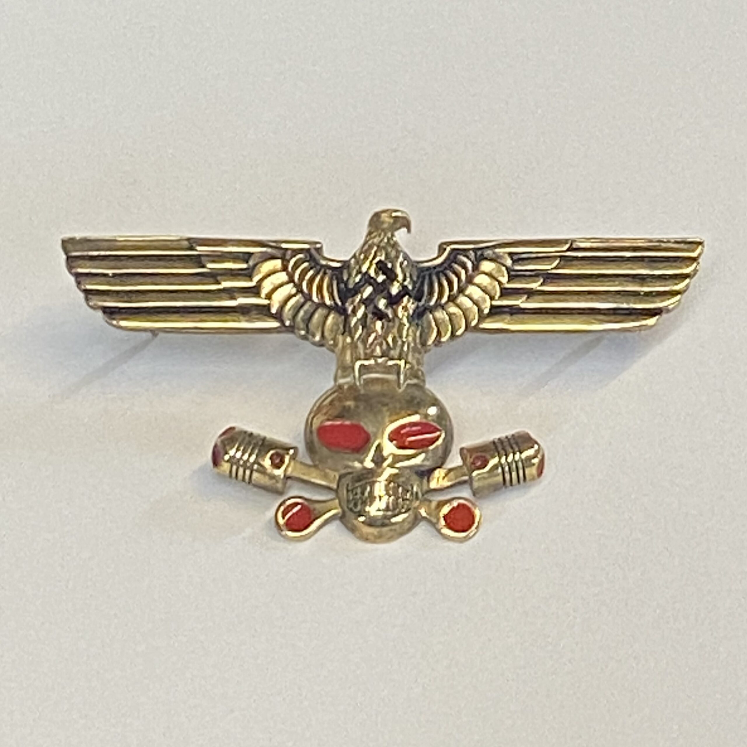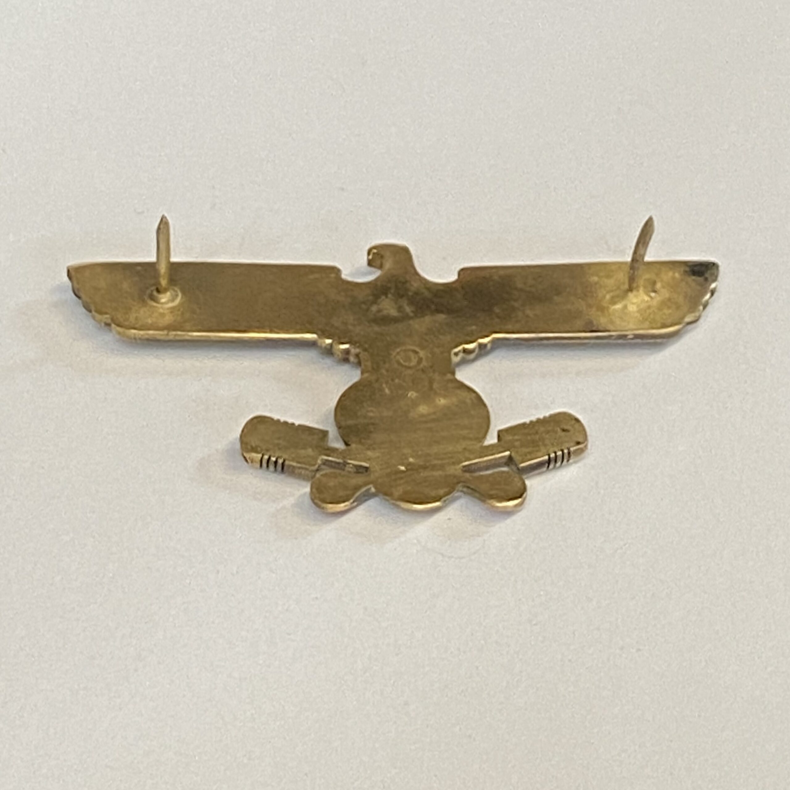 Large Brass Eagle Pin holding a Small Charlie in his Claws, Eagle has a Swastika on His Chest