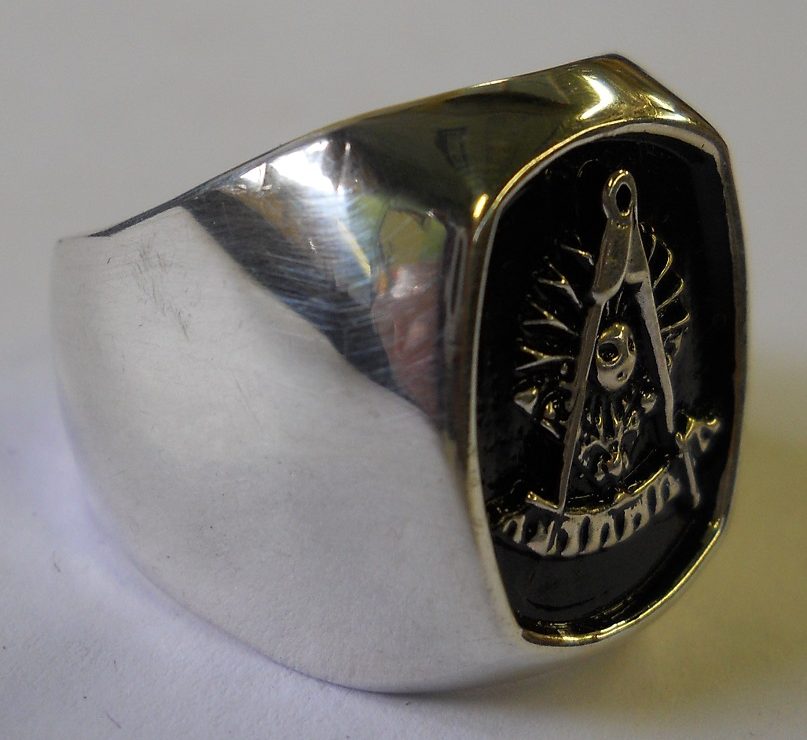 Men’s Solid, Sterling Silver Past Master Masonic ring. The ring weighs about 23.74 grams of solid sterling silver. It also comes in 10k gold, 14k gold, 18k gold and Platinum. Please contact us for pricing on these other precious metals.