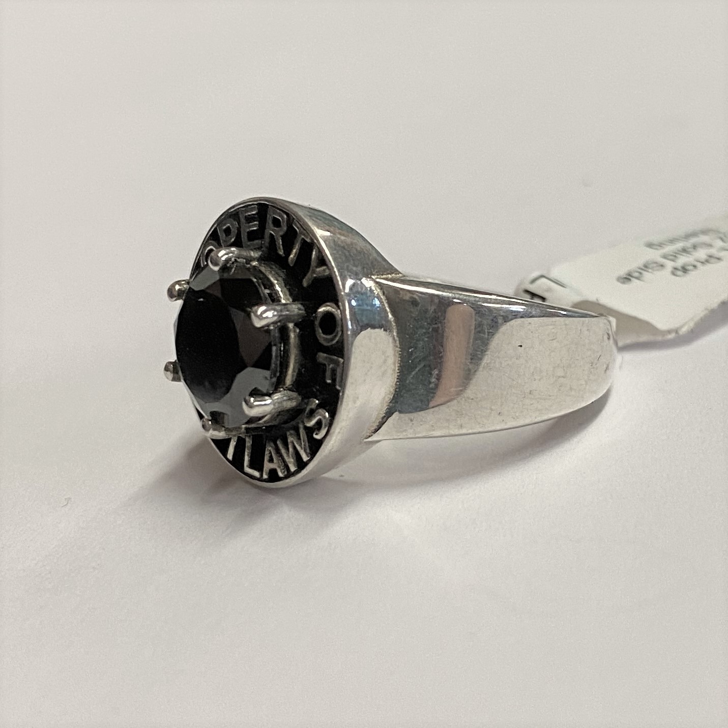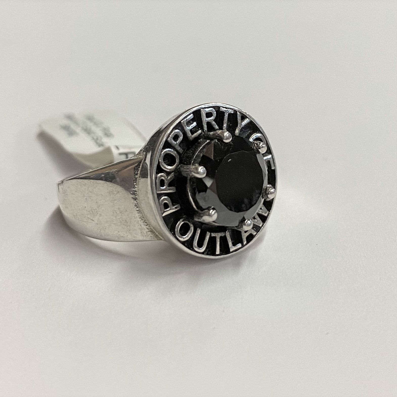 Round Sterling Property of Outlaws Ring with Solid Sides and Set with Round Black CZ