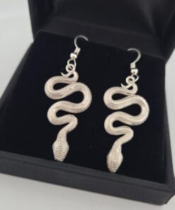 This is our stunning smooth snake dangle earrings. These dangle earrings are apart of our smooth snake collection. The collection includes a pendant, dangle earring, ring, and a bracelet. Together or apart it is a beautifully crafted piece of jewelry!
