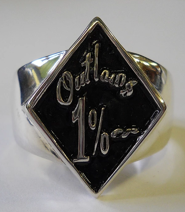 Sterling Outlaws 1%er Script Diamond Shaped Ring