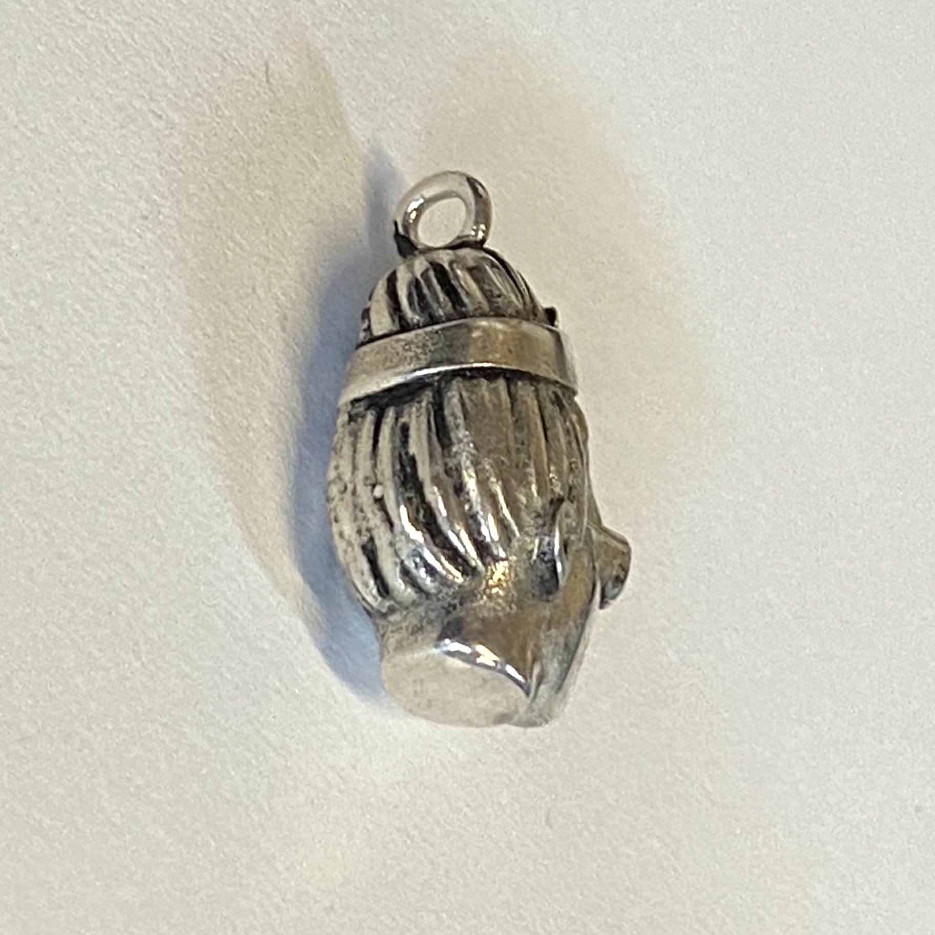 The charm weighs 8.1 grams in sterling silver and is 16.18mm tall x 8.72mm wide x 10.22mm deep. It comes with a locking jump ring to attach it to your bracelet.