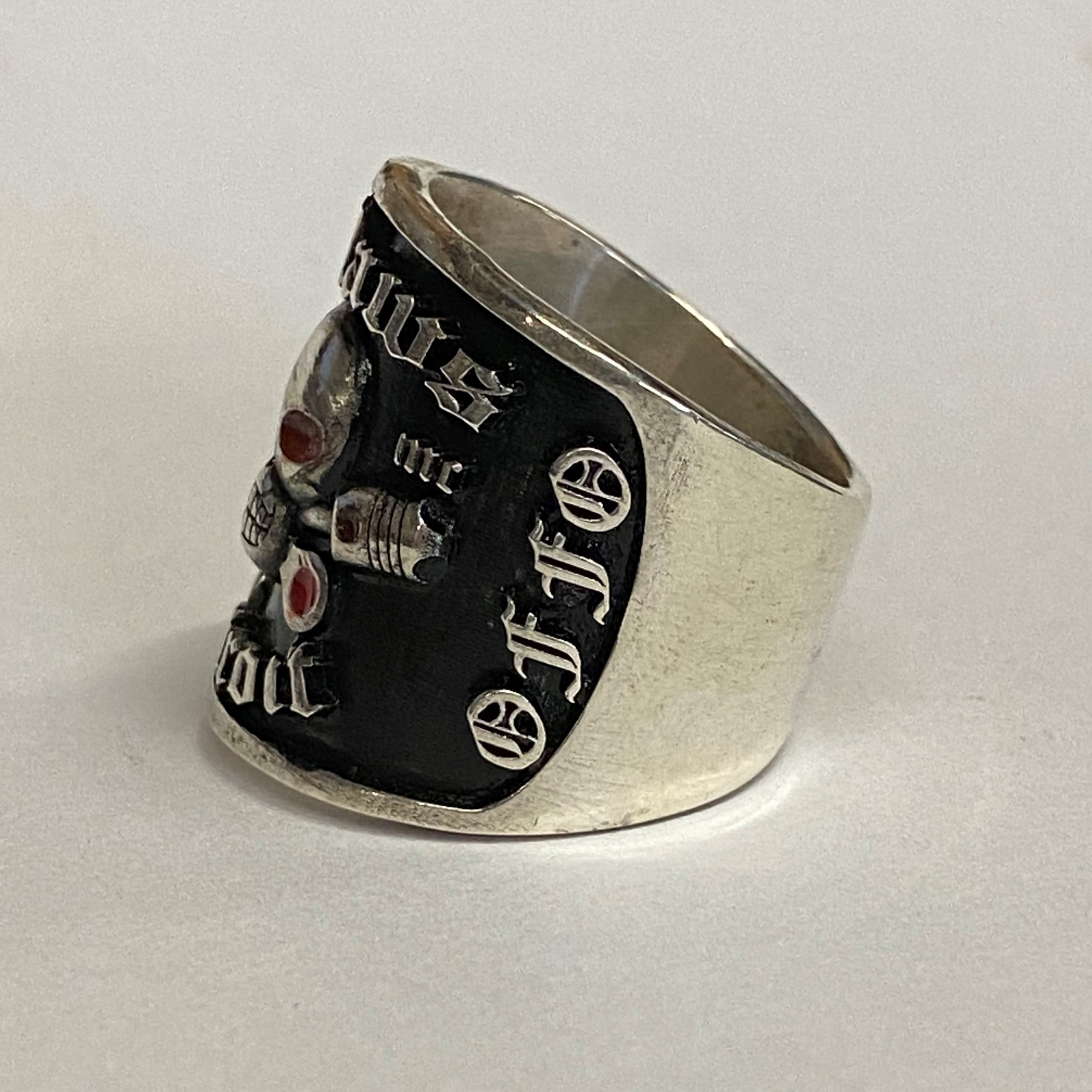 Ring is 24mm wide and weighs 19.35 grams in sterling silver.