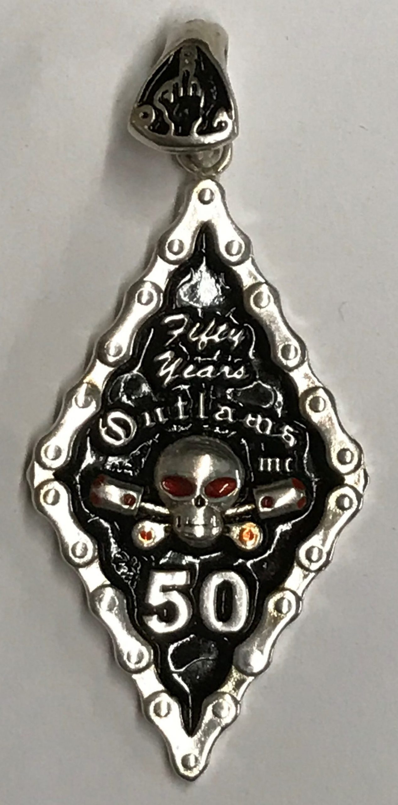Sterling Diamond Shaped Outlaws 50 Years Pendant