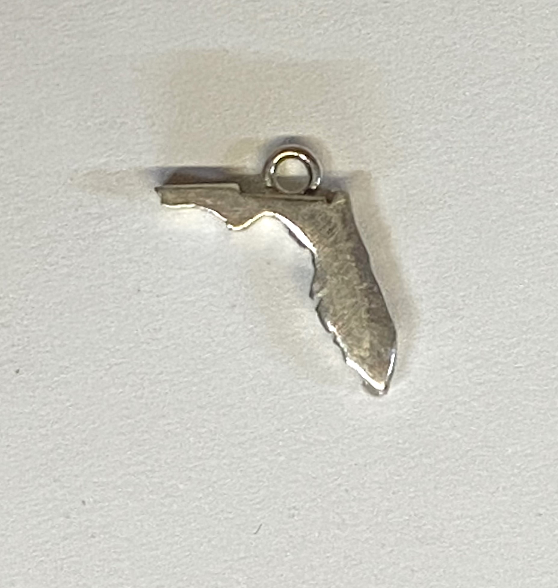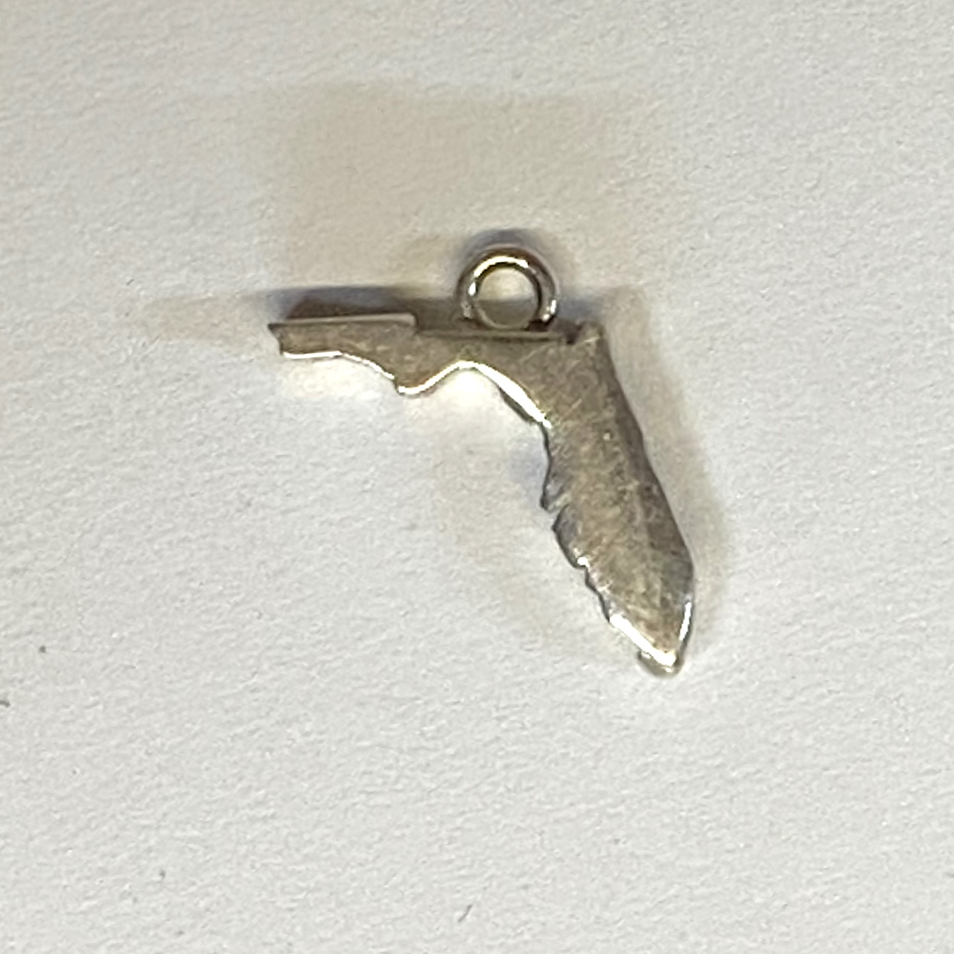 Sterling charm shaped like the state of Florida.