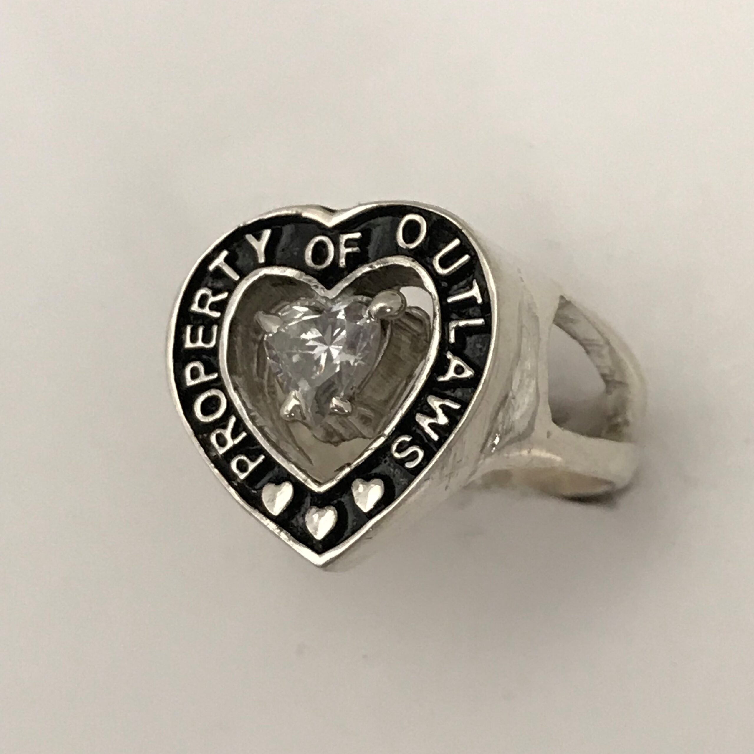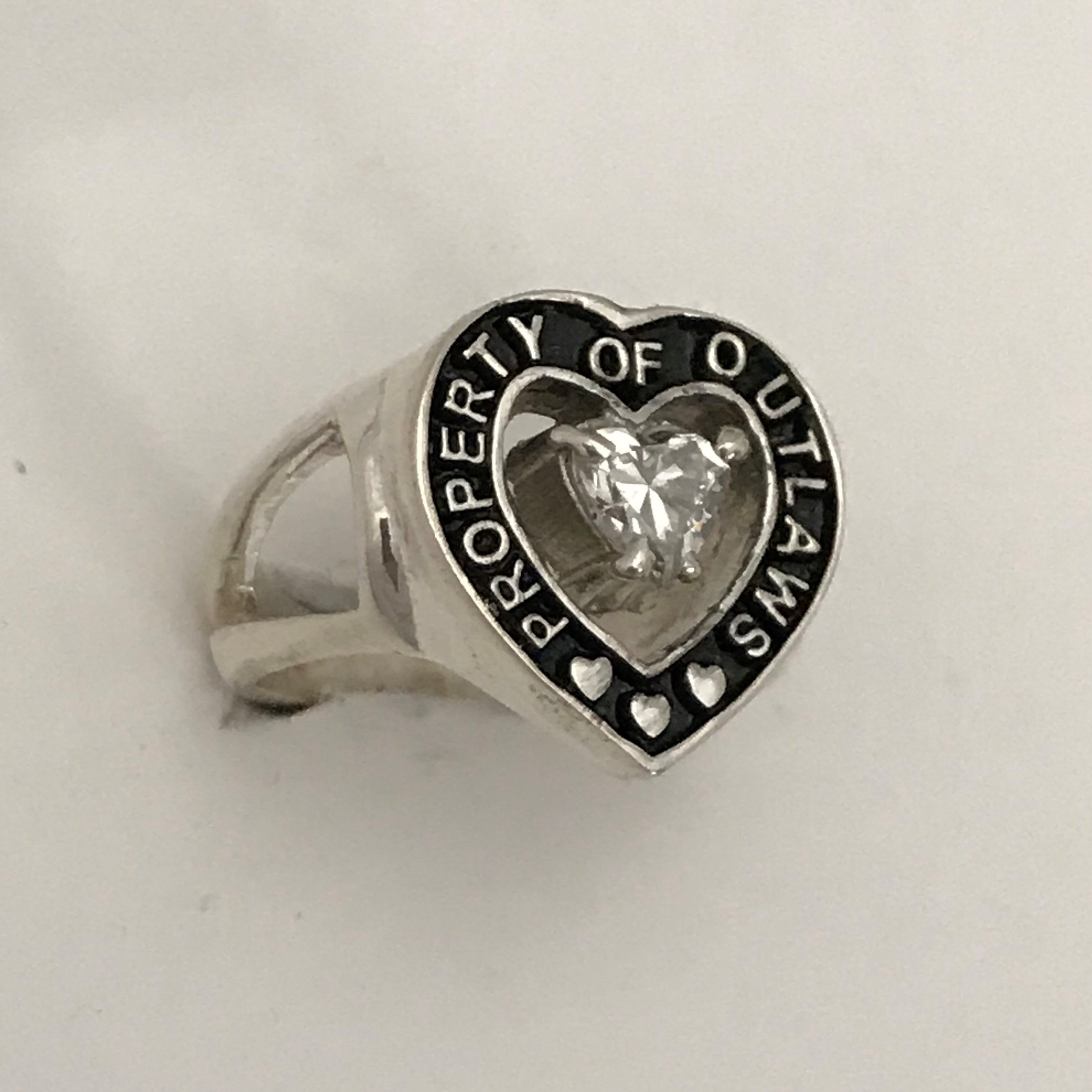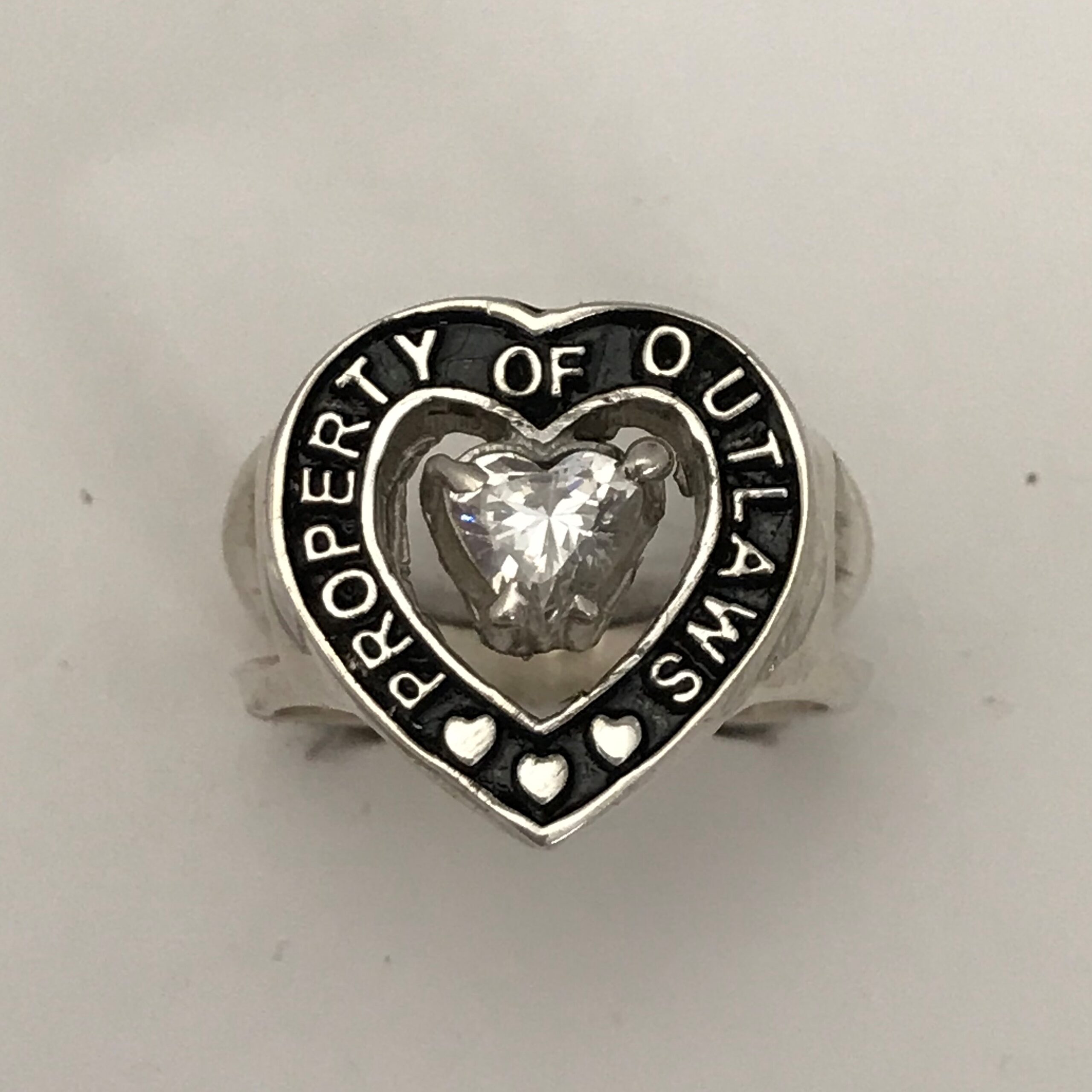 Sterling Heart-shaped Outlaws Property Ring with Cubic Zirconia