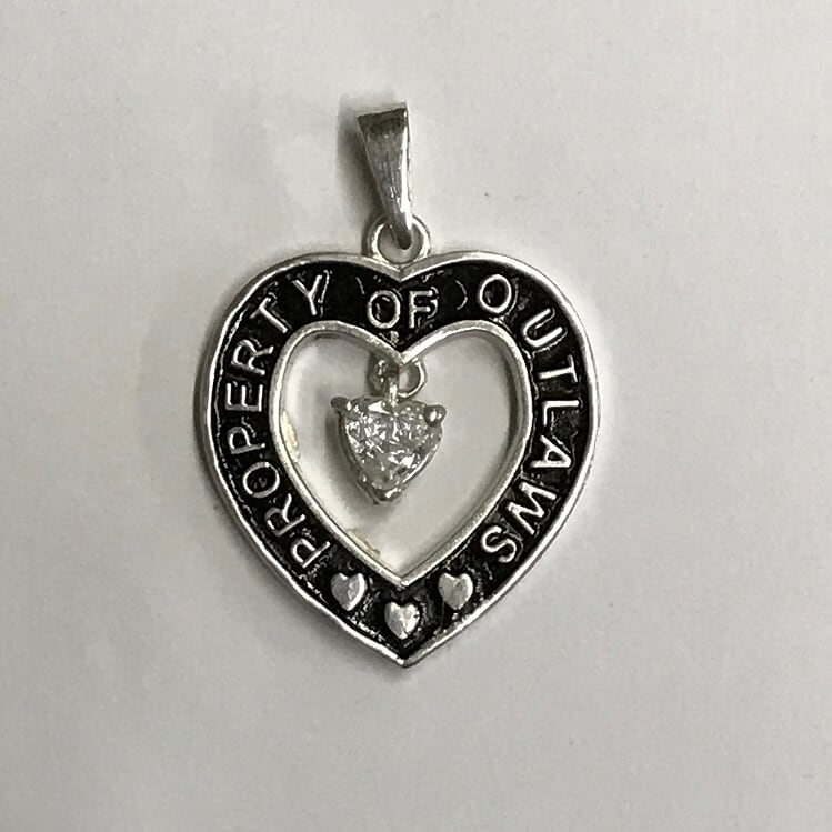 Sterling Heart-shaped Property of Outlaws Pendant with Heart-Shaped Cubic Zirconia
