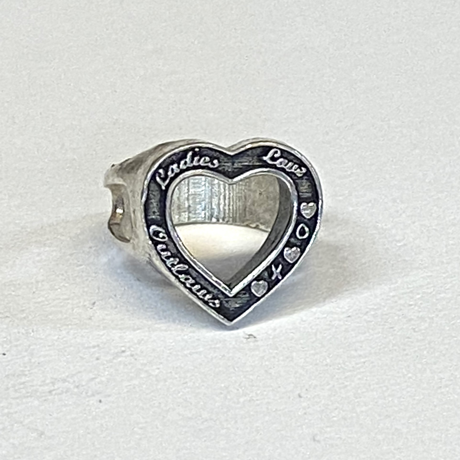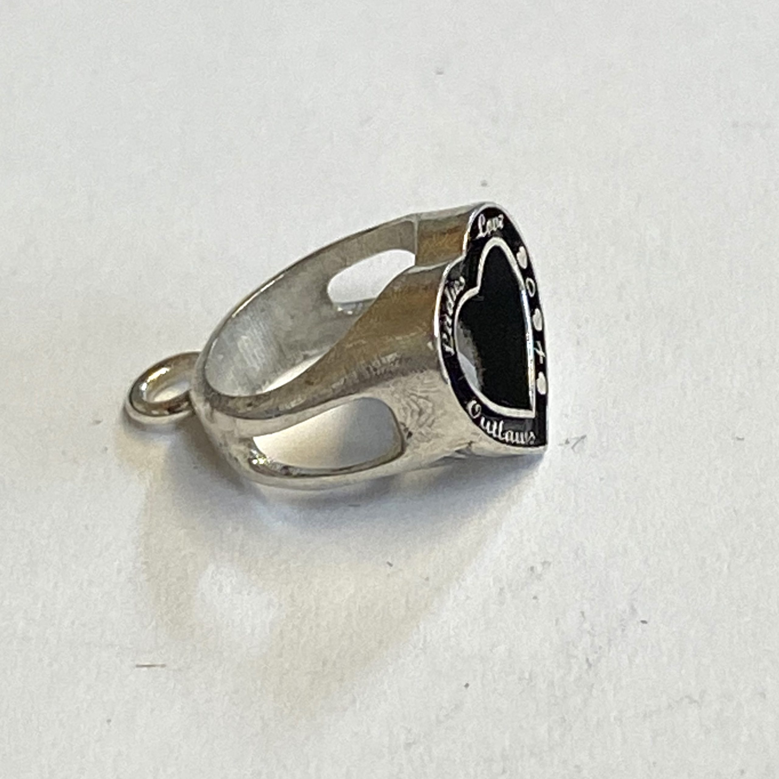 Sterling charm shaped like the Ladies Love Outlaws Heart Ring.