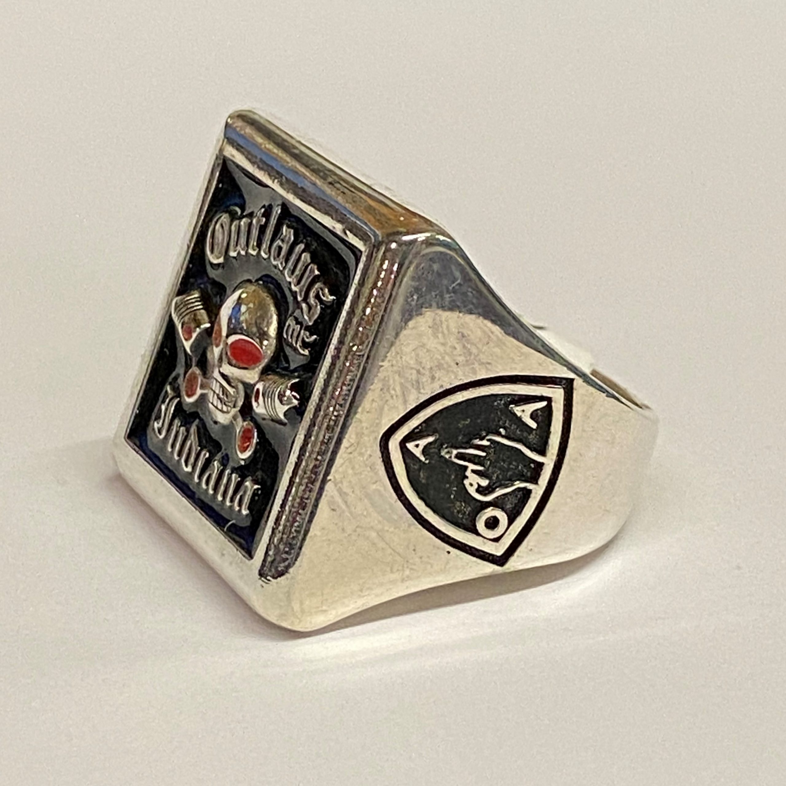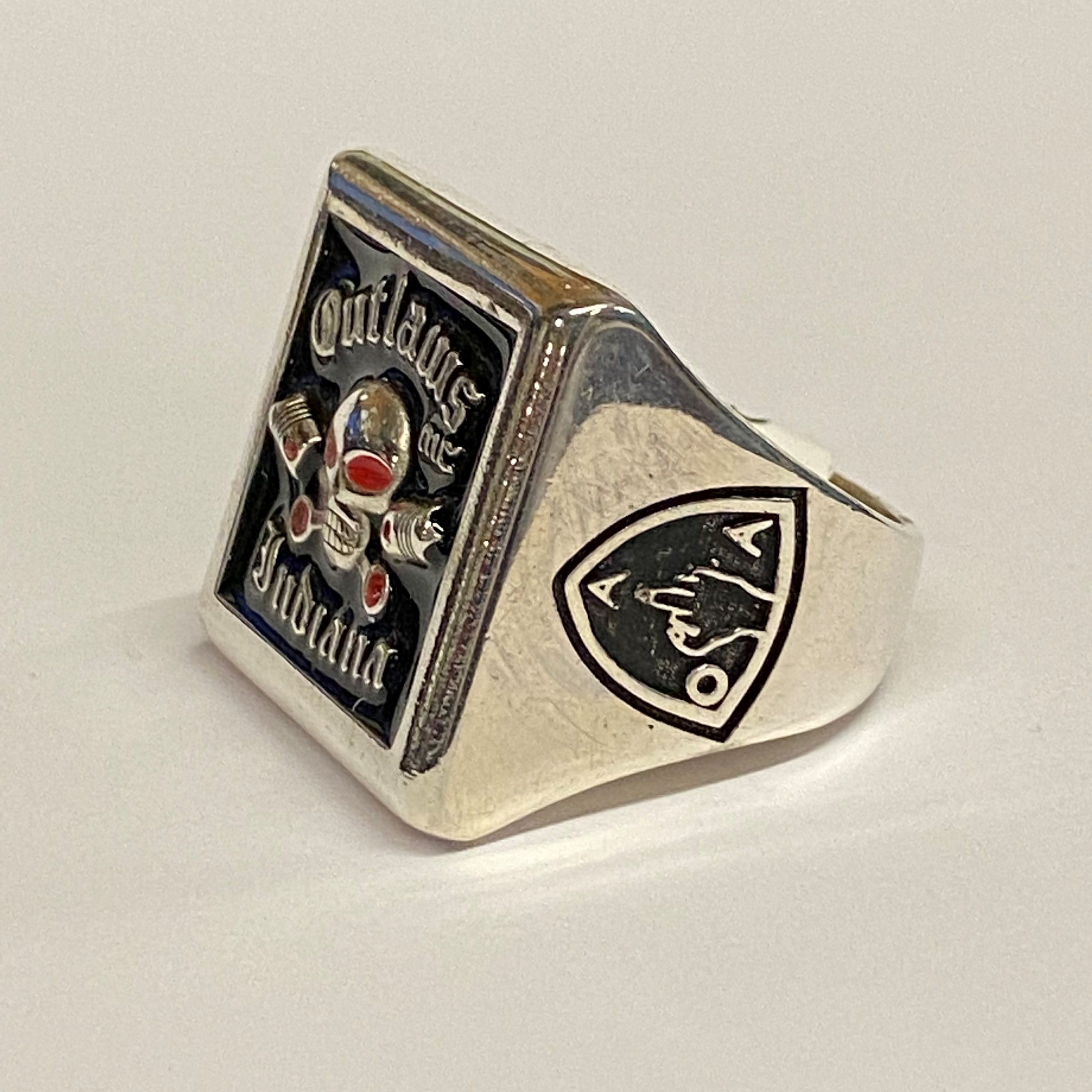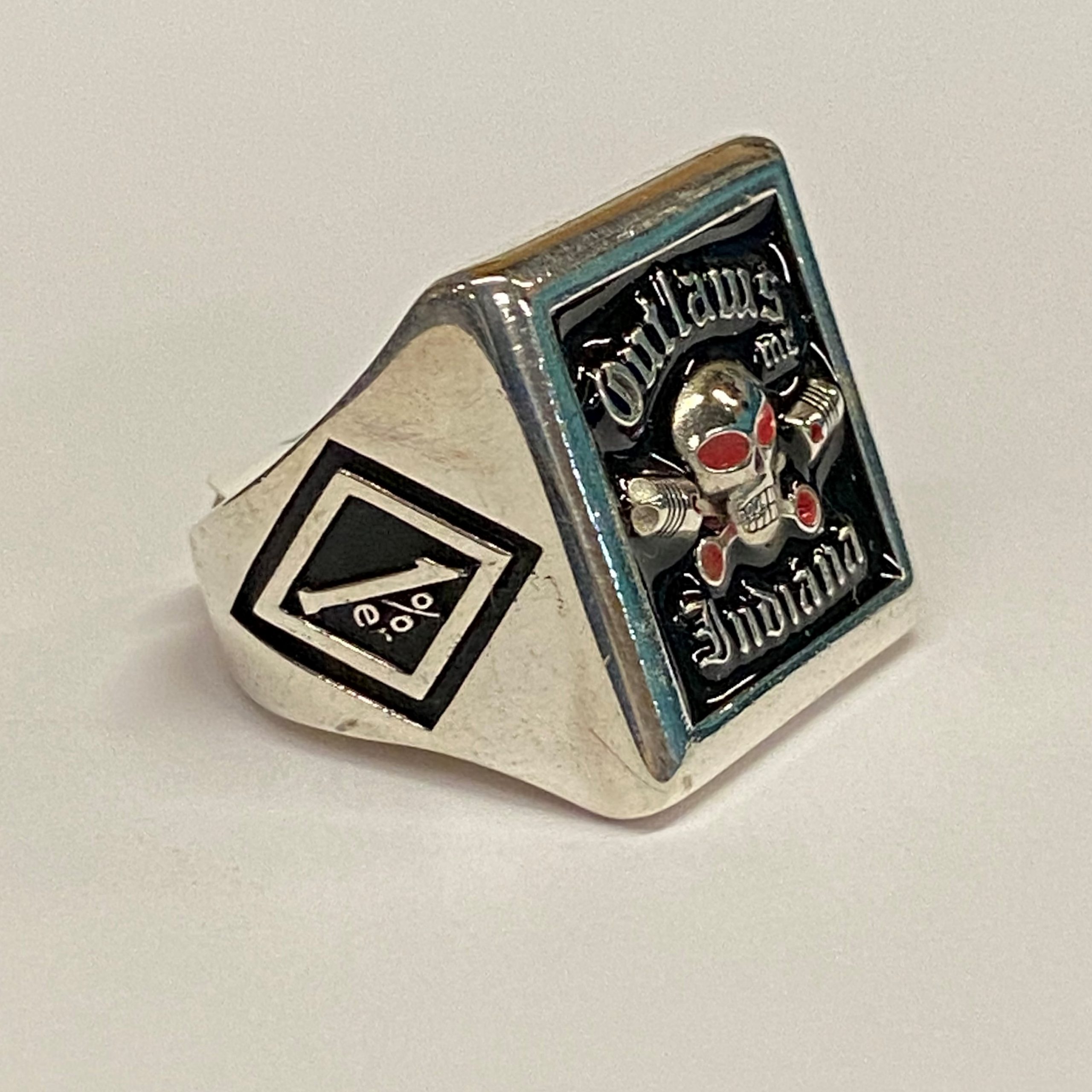Sterling Large Square Outlaws MC Indiana Ring