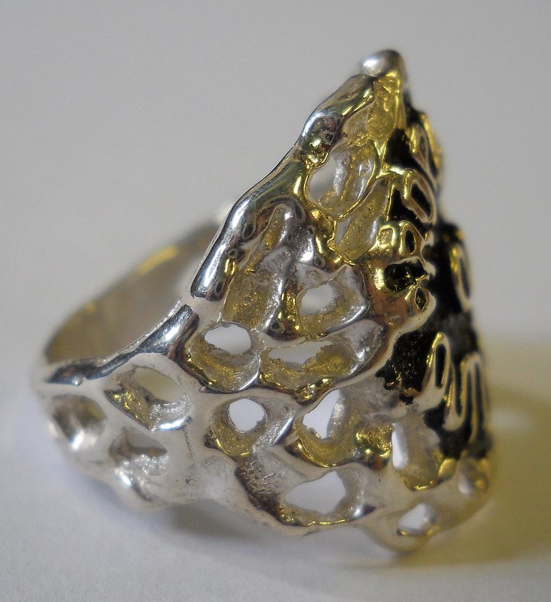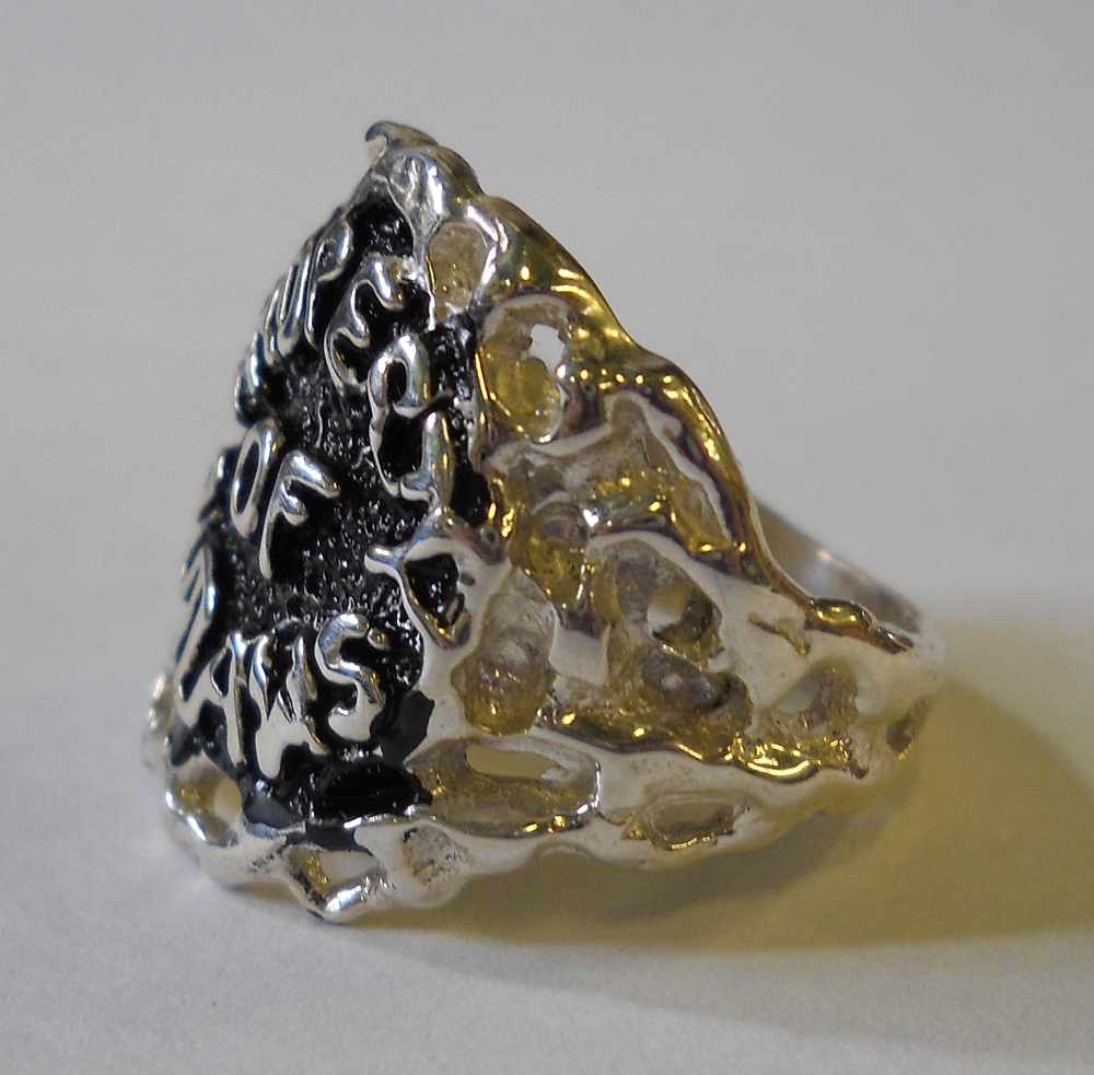 This ring measures 21mm, and weighs 9.66 grams in sterling silver.