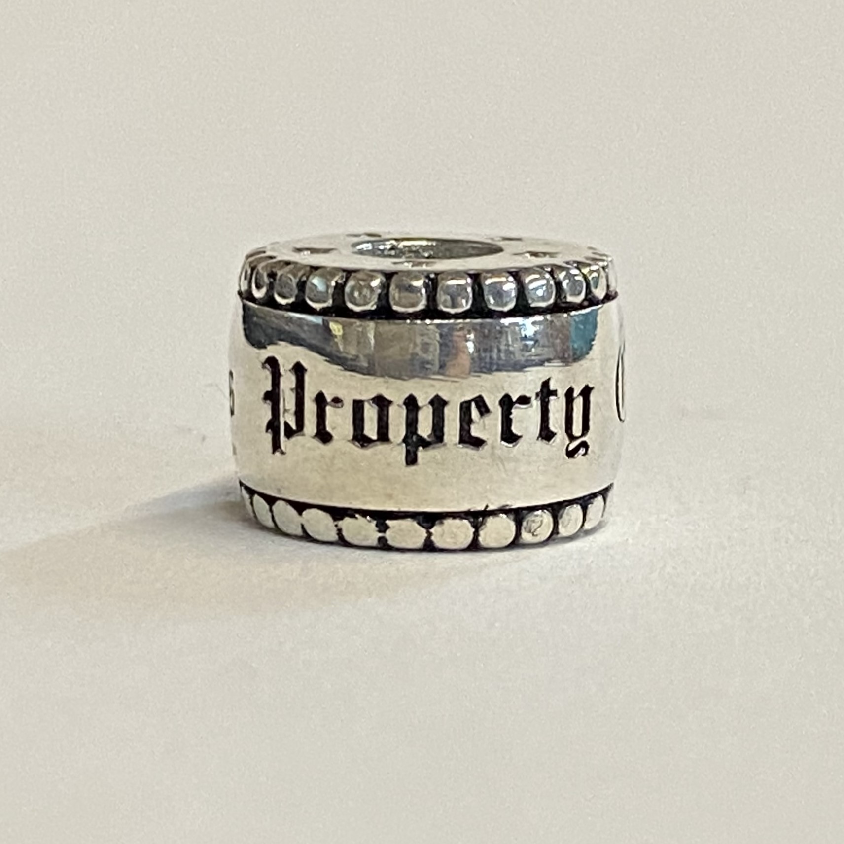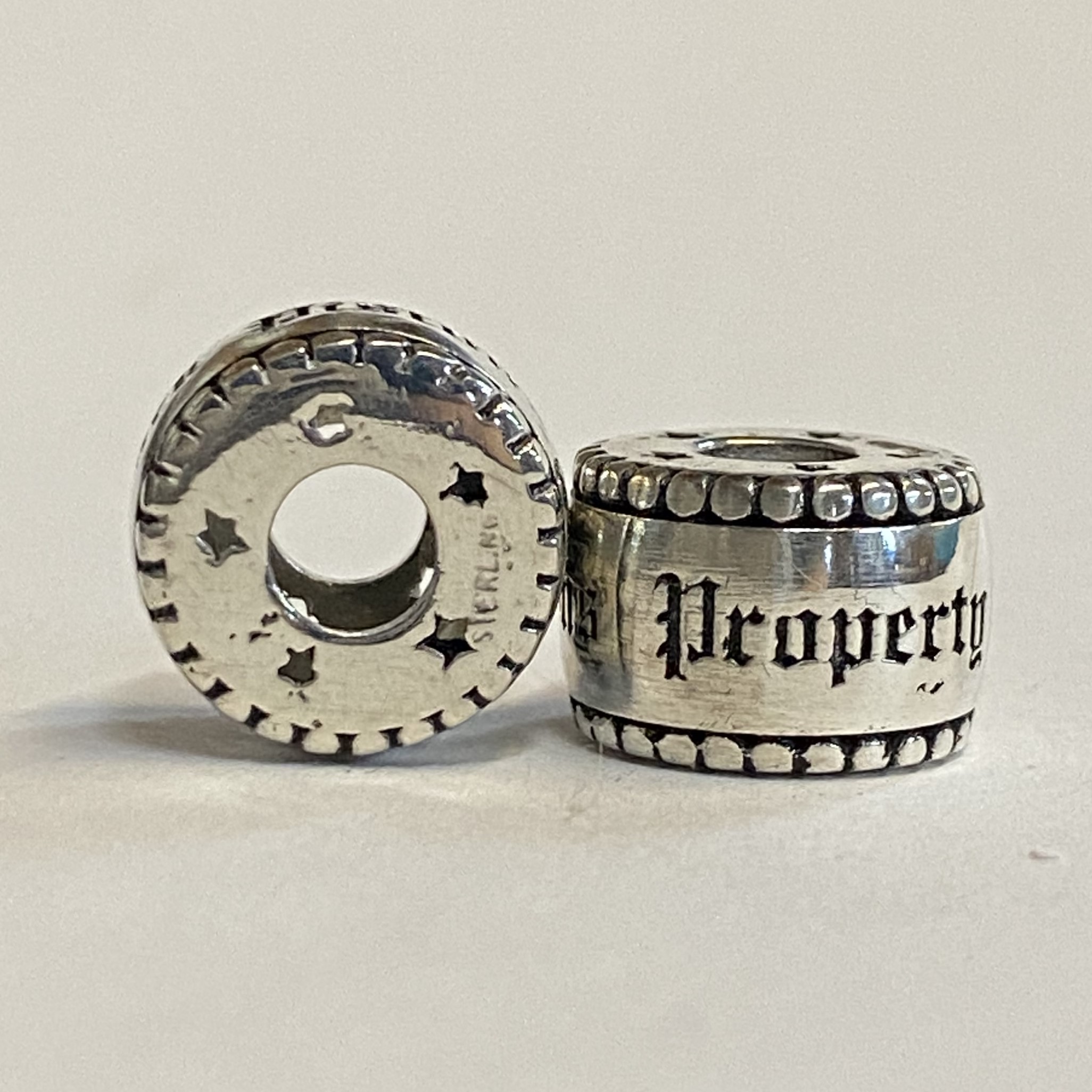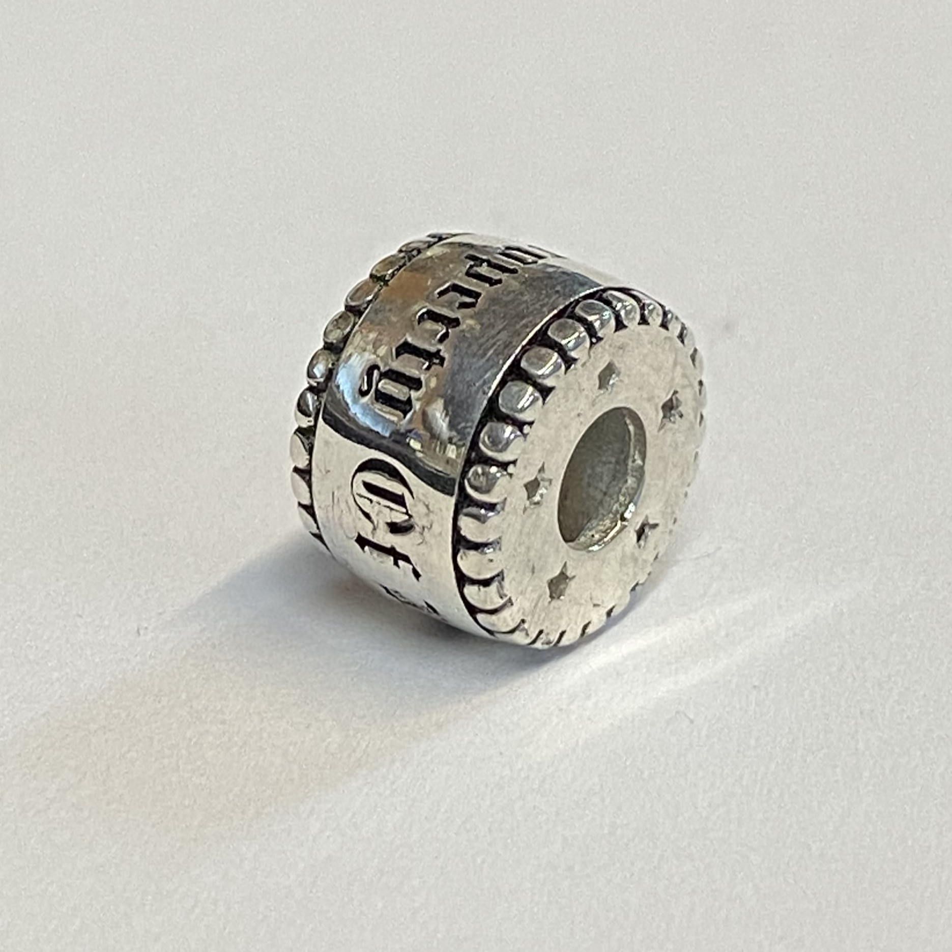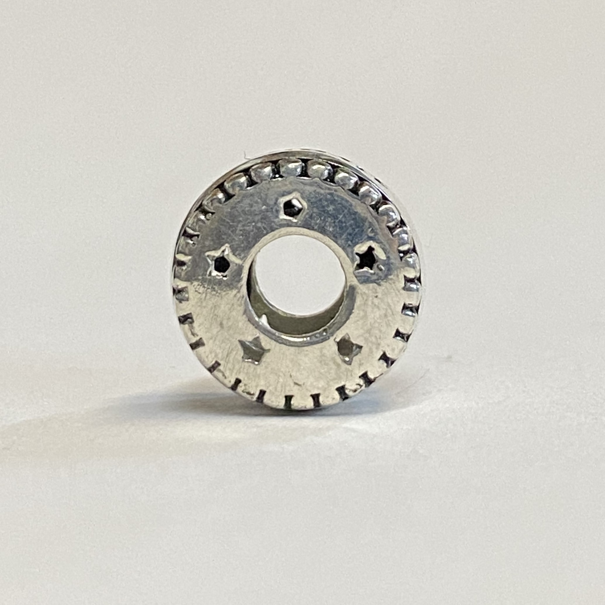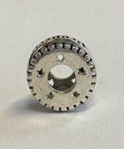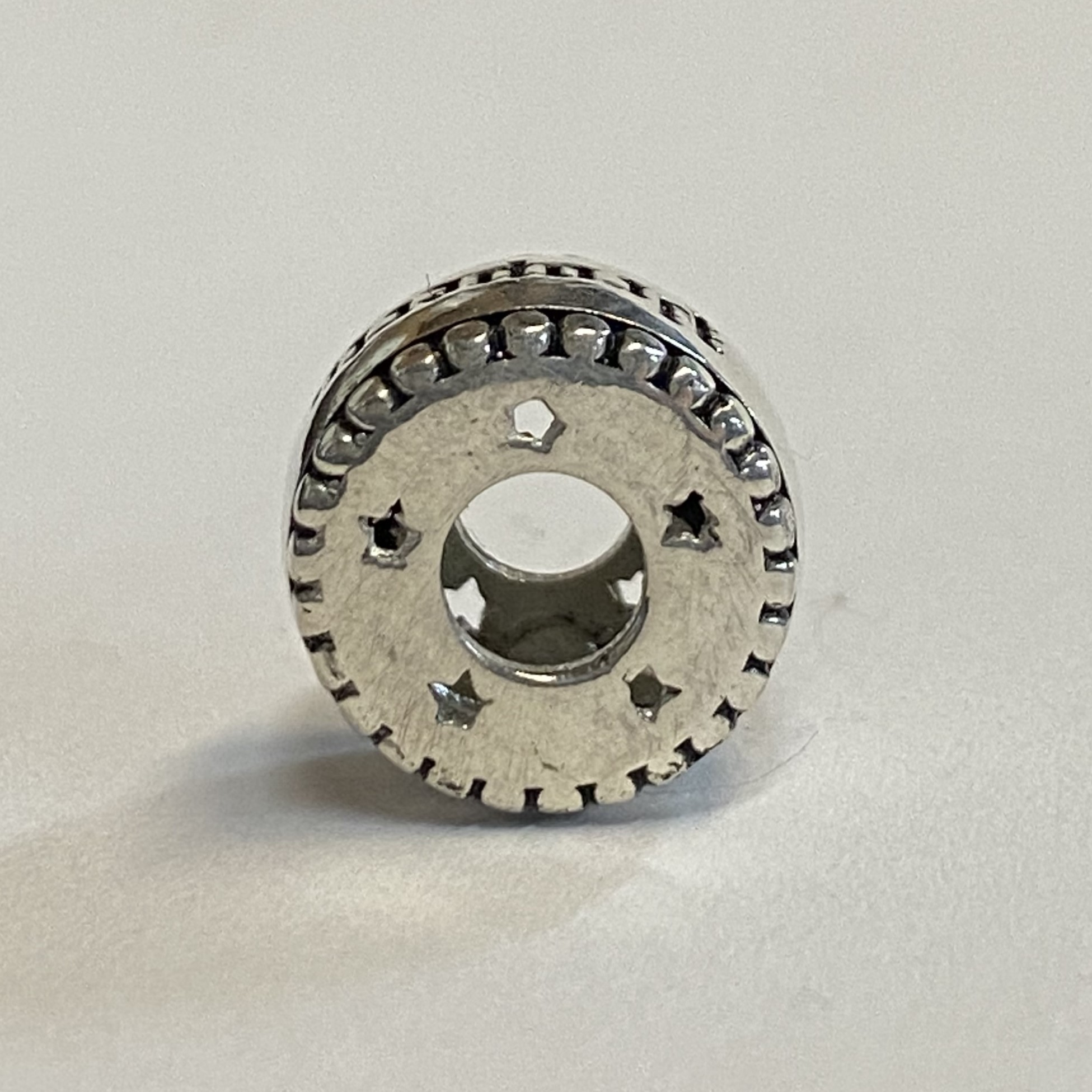 This bead weighs 0.4.82 grams in sterling silver and is 12.91mm in circumference and 8.76mm thick.