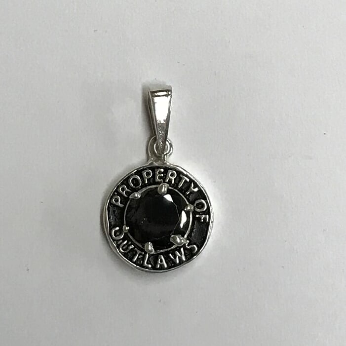 Sterling Round Property of Outlaws Pendant with Black Cubic Zirconia