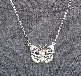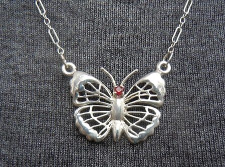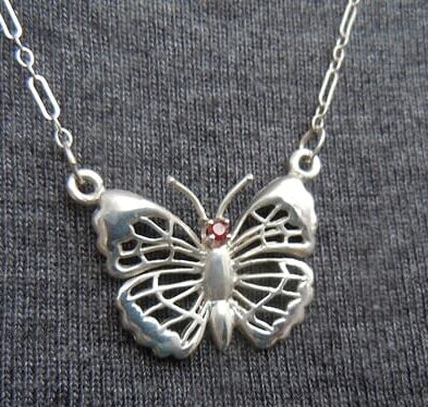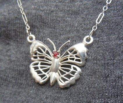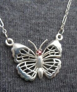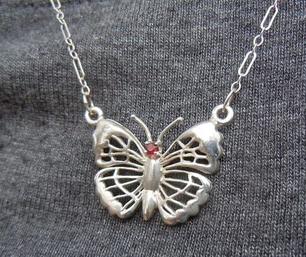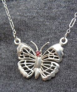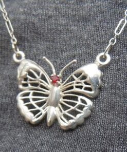 Solid Sterling Silver Butterfly Necklace with Ruby on 16″ chain