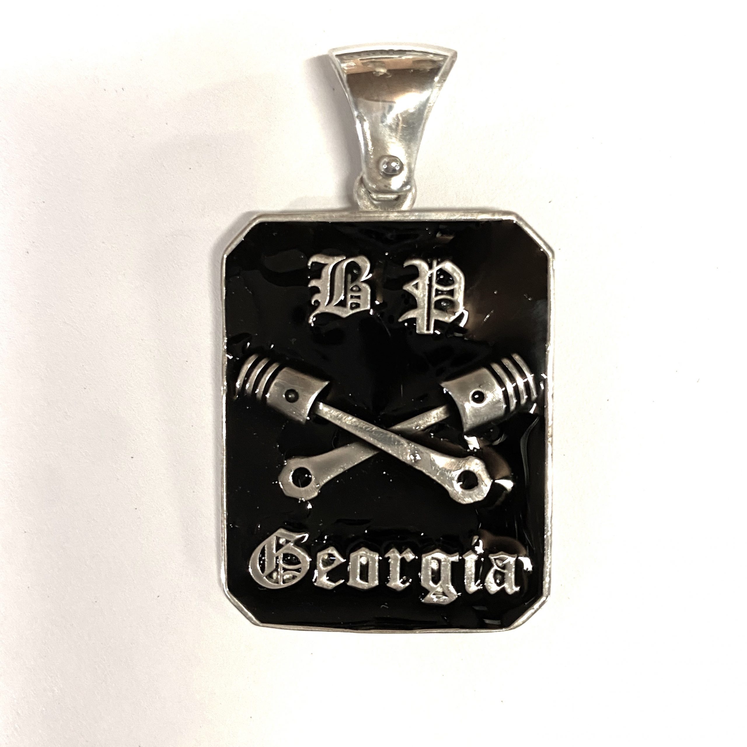 Sterling Solid Rectangular Black Pistons Georgia Pendant