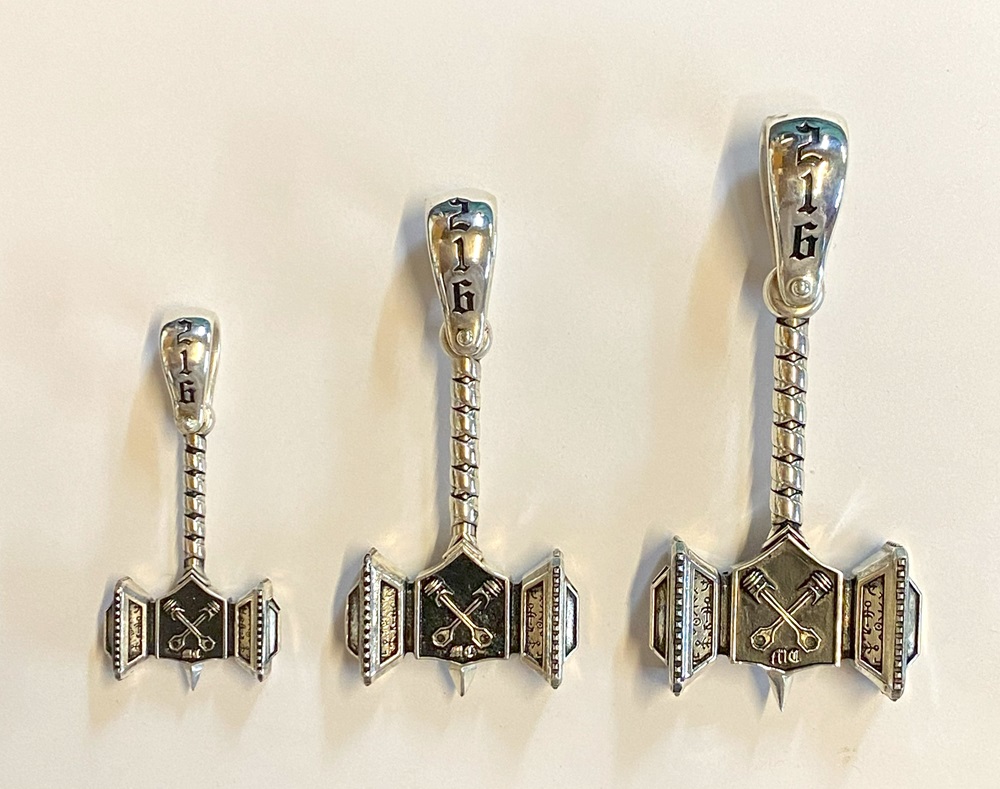 This pendant is 72.83mm tall without bail; 94.41mm tall with bail x 44.18mm wide, and weighs 98.75 grams.