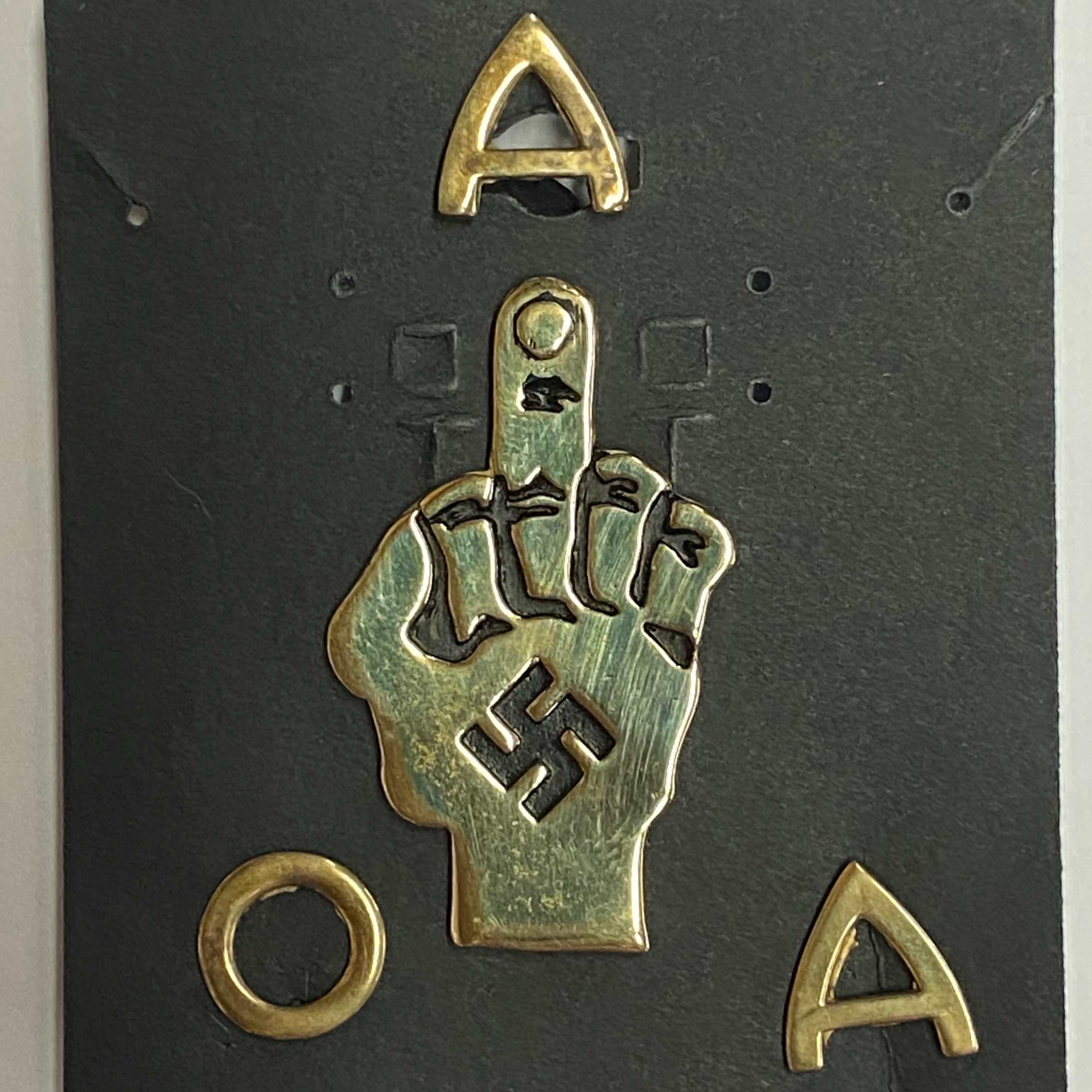 This is the same as the OL206 pin set except there is a swastika on the finger pin.